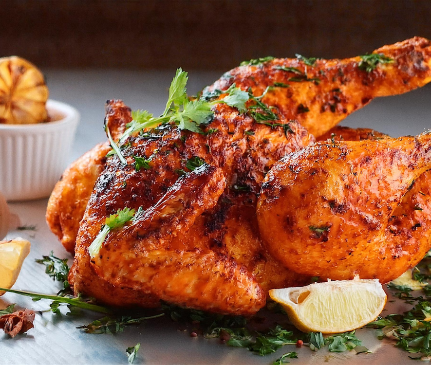 eine ganze hähnchen mit einer Mischung aus exotischen und gebratenen Gewürzen